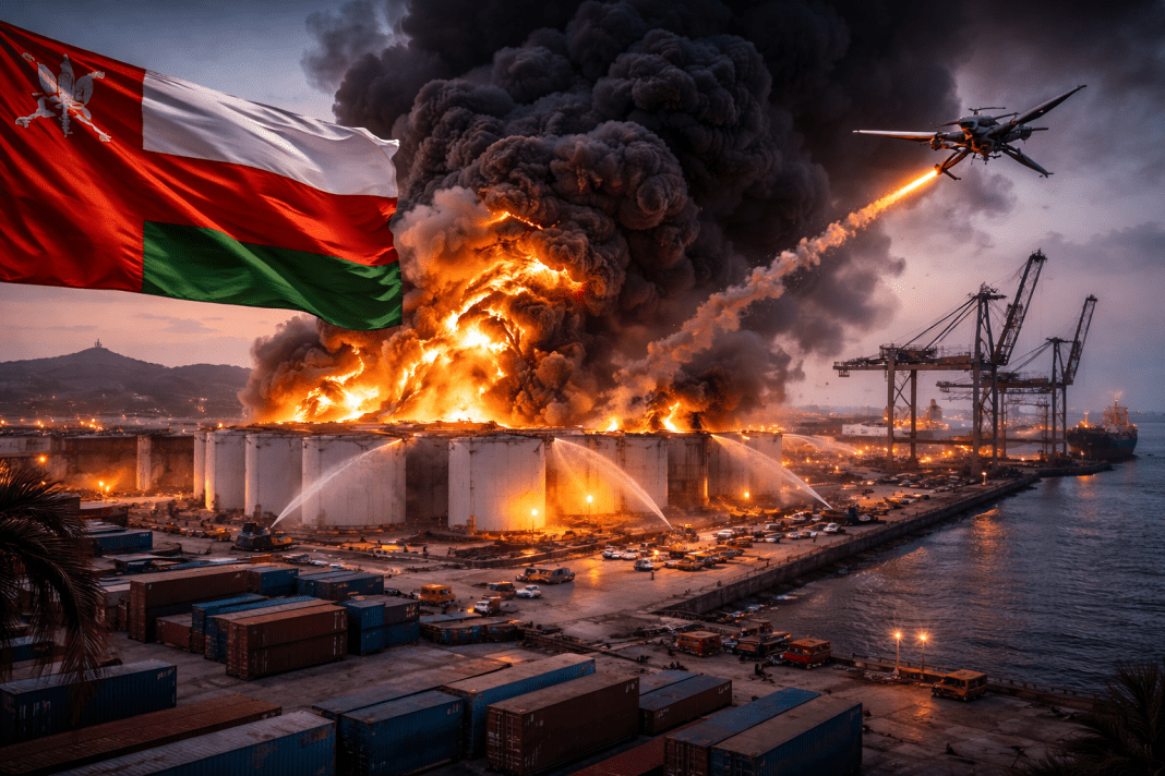 Explosions and towering flames erupted at one of the Middle East’s most important maritime gateways after multiple drones struck fuel storage tanks at the Port of Salalah in Oman on March 11, triggering fires and raising alarm across global shipping and energy markets.