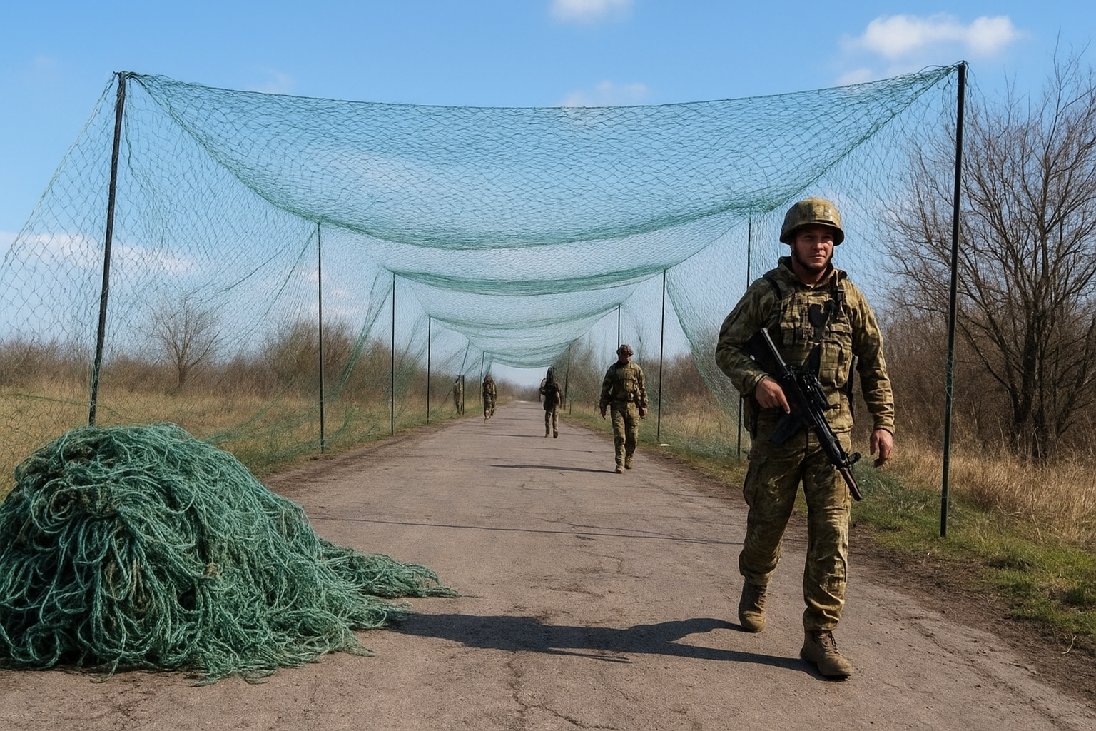 Ukrainian troops are using the nets in creative ways. They hang them across roads, stretch them over trenches, and even cover vehicles with them. Some nets are also used to make tunnels that protect people moving through the battlefield. These nets act like invisible walls in the air, stopping drones from reaching their targets.