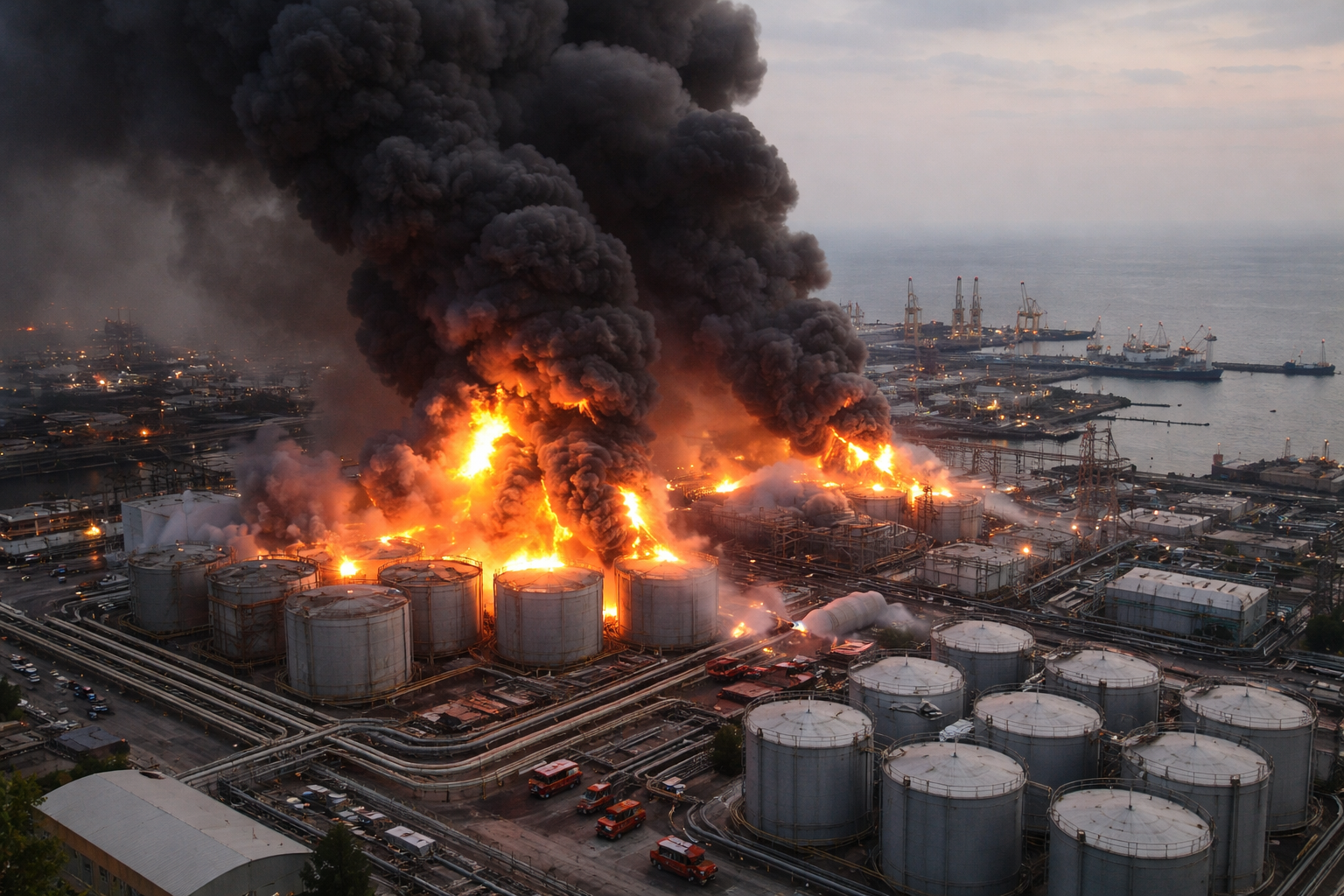 Massive firestorm erupts at Russia’s key Black Sea oil port after Ukrainian drone strike