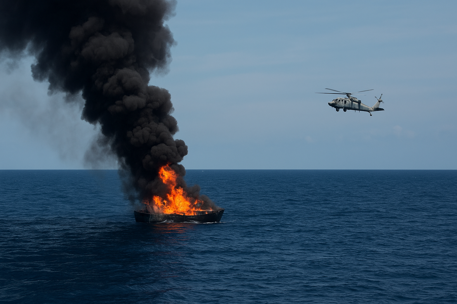 Video footage released by the Pentagon shows small vessels engulfed in flames following precision strikes from US aircraft and naval forces. The Defense Secretary wrote, “The department has spent over two decades defending other homelands. Now, we’re defending our own.”