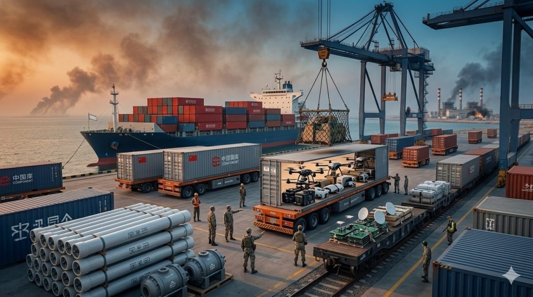 Since the beginning of 2026, multiple IRISL vessels have visited Gaolan Port and departed with cargo, later unloading at Iran’s Shahid Rajaee port in Bandar Abbas. The pattern is clear: China has become Iran’s de facto arsenal quartermaster, providing not weapons directly, but the industrial chemicals that make weapons possible.